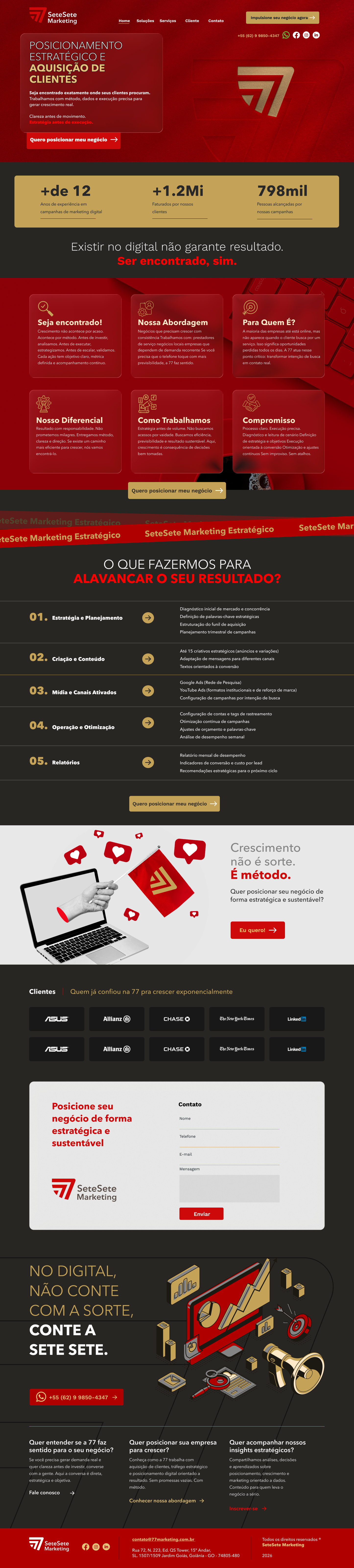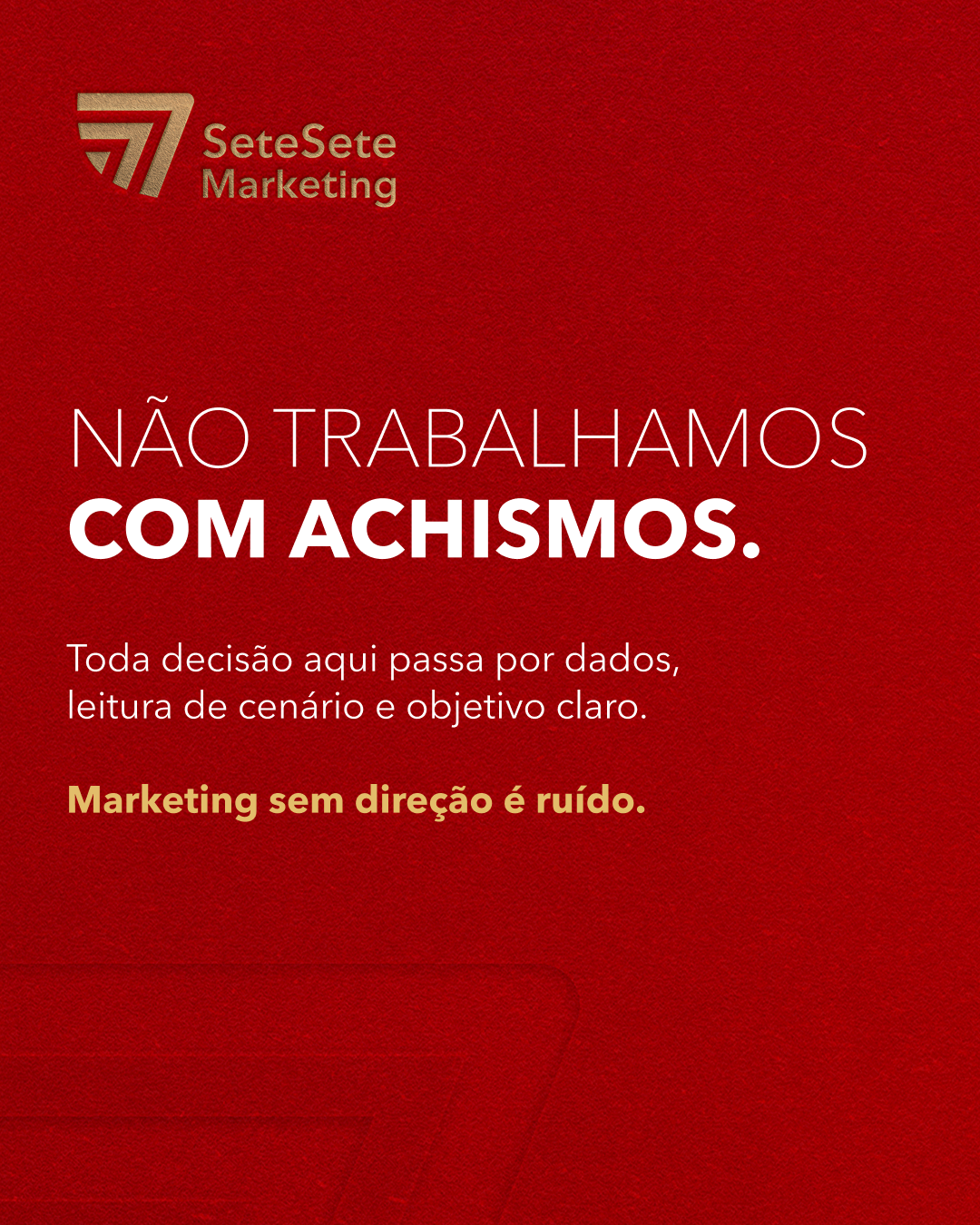 O projeto Sete Sete Marketing não entrega apenas uma identidade visual, mas uma base sólida para crescimento, posicionamento e reconhecimento. Uma marca construída para durar, evoluir e sustentar decisões estratégicas ao longo do tempo. Porque marca não se improvisa. Marca se constrói.