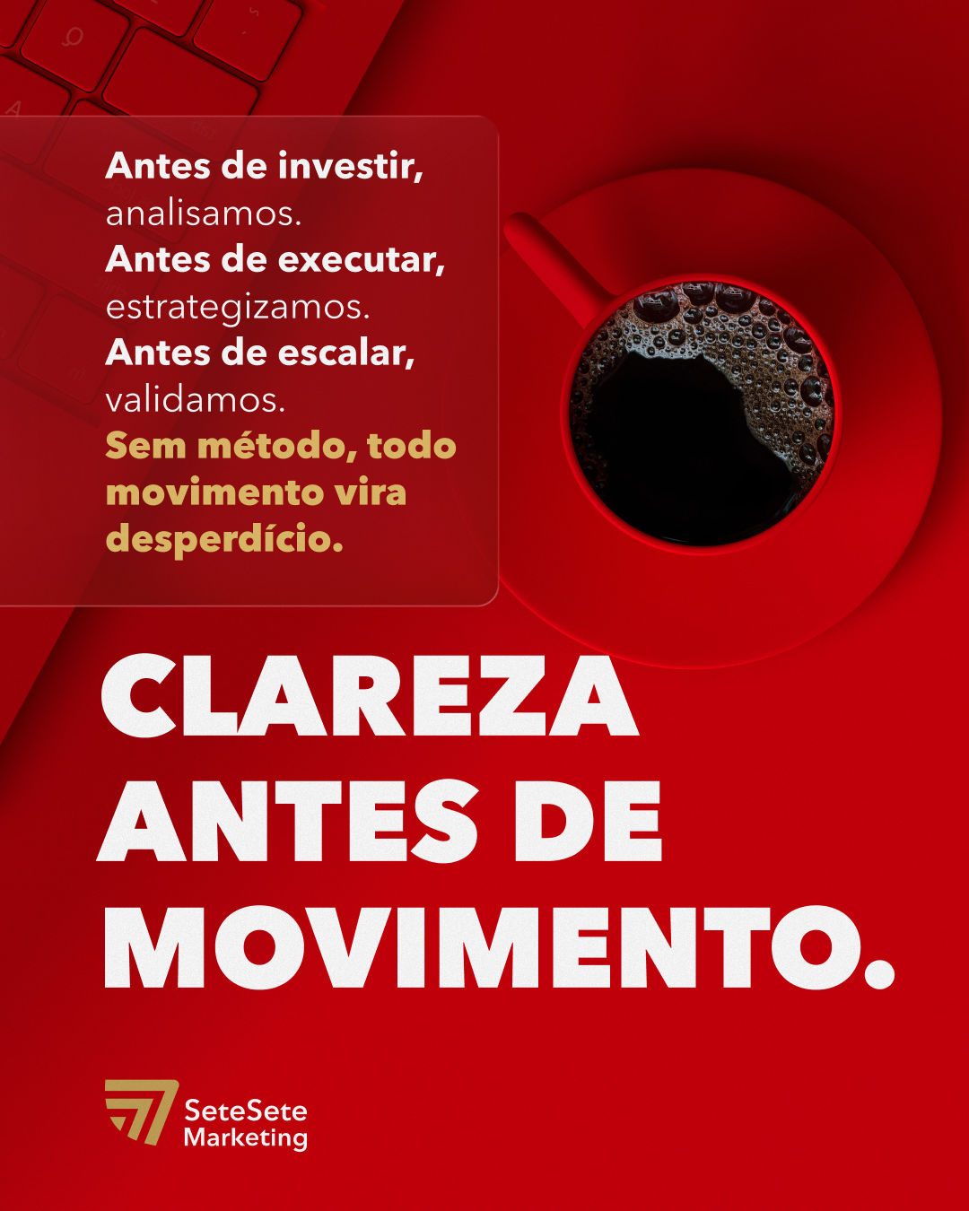 Sete Sete Marketing nasce da premissa de que marca não é estética isolada, é sistema. Um conjunto de decisões visuais, conceituais e estratégicas que precisam operar com coerência em todos os pontos de contato.